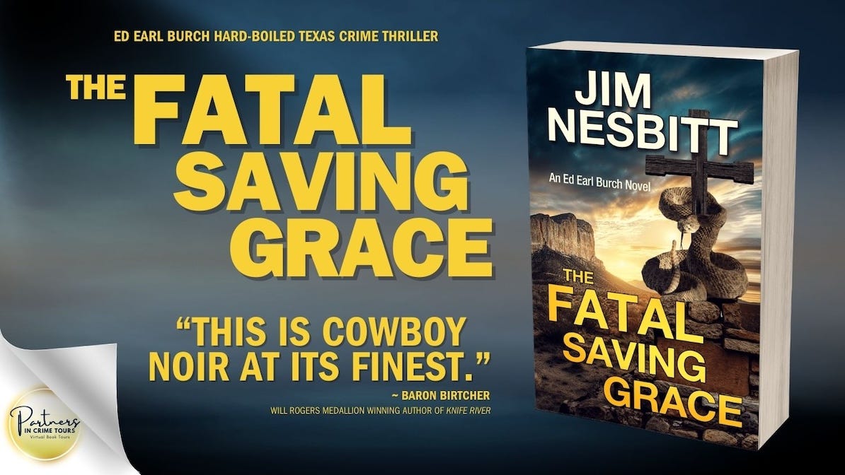 If it’s Wednesday, it must be time for another whistle stop on the Partners In Crime blog tour promoting my latest hard-boiled Texas crime thriller. Cheryl Masciarelli showcases THE FATAL SAVING GRACE and runs a feisty Q&A with your ol’ pal, Honest Jim.